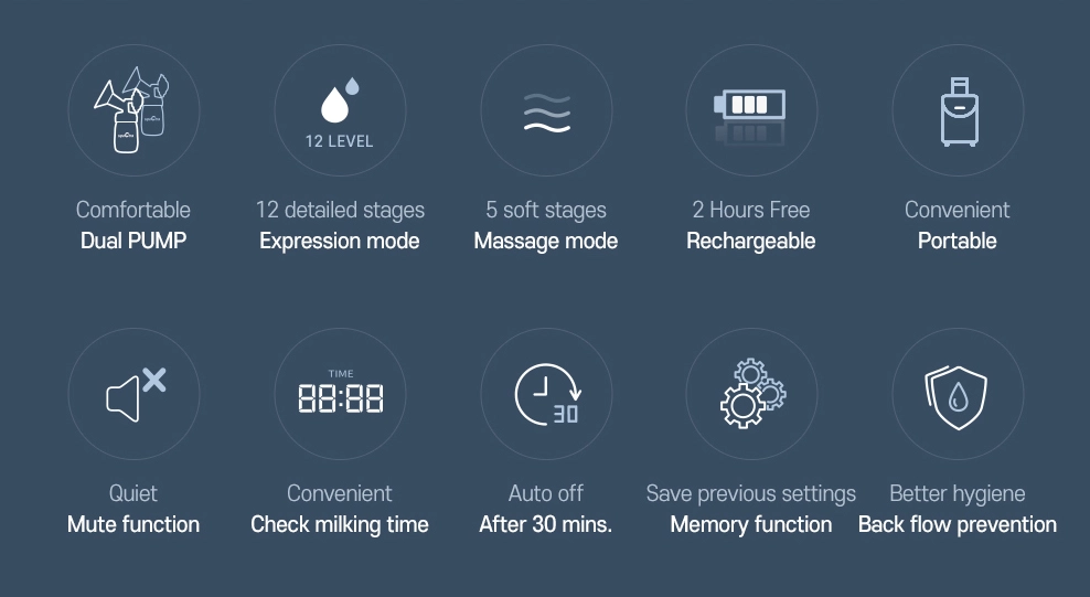 The Spectra Breast Pump comes with everything you need to single or double pump.• Two (2) 24mm Spectra breast flanges • Two (2) Spectra Backflow Protectors. Includes silicone membrane, uppercase, and lowercase caps for each Backflow Protector • Two (2) Spectra Duckbill Valves • Two (2) Spectra connection Tubings • Two (2) Spectra Wide Neck Storage Bottles Include with Airtight cap and cover (without Nipples )